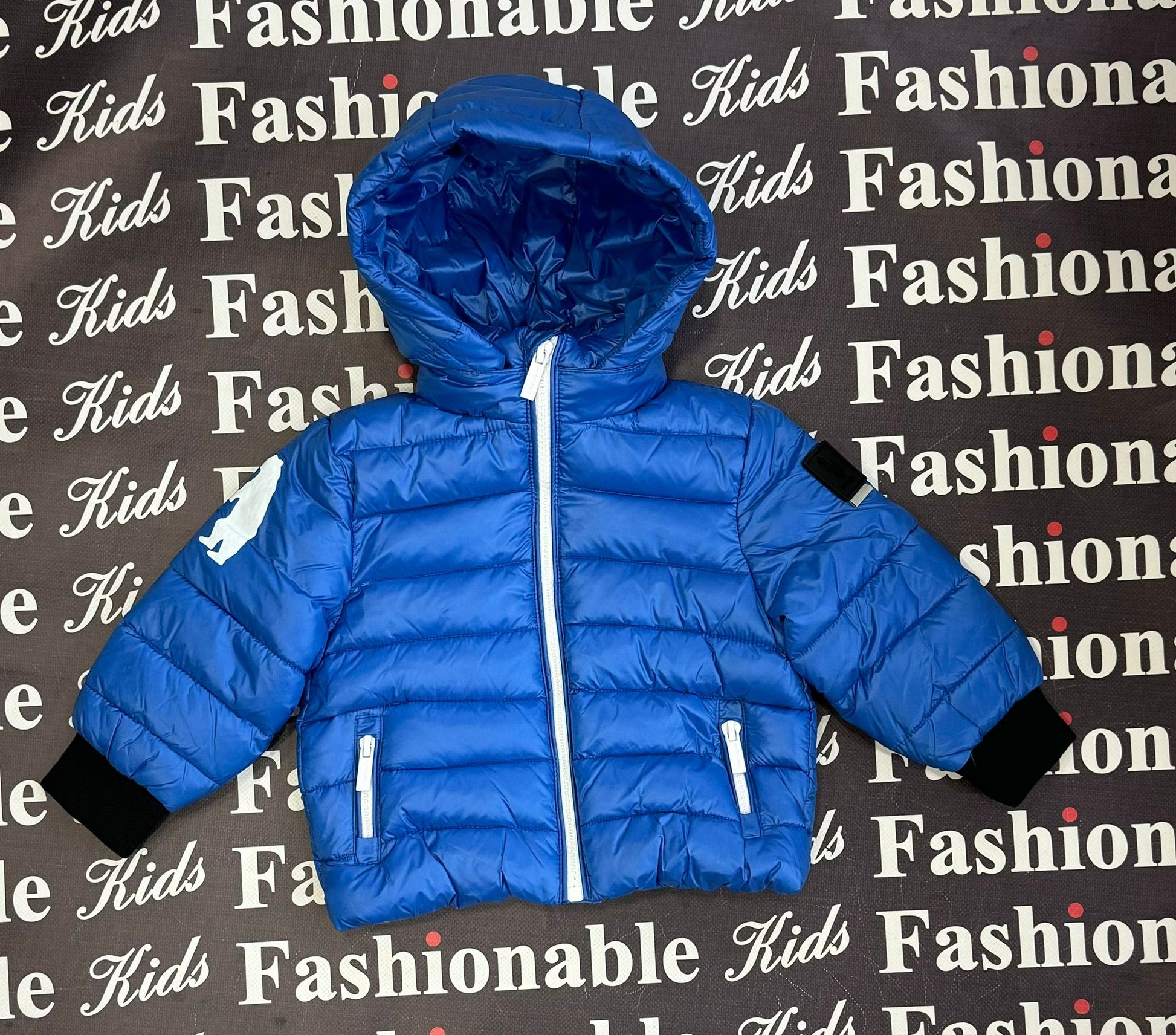 GIUBBOTTO REFRIGUE NEONATO CON CAPPUCCIO REMOVIBILE E LOGO